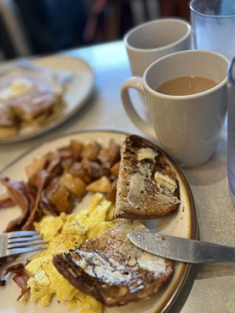 コモンからチャールズストリートにめがけて道を進むと、フランクが美味しい朝食を食べよう!と連れていってくれたのは、チャールズストリートでも有名なパラマウントというカフェ。朝食で有名なので、ブランチアワーは多くの人で賑わっていました。アメリカでは、コーヒーは一度オーダーするとおかわりは自由なのと、アメリカーノは何杯でも飲めてしまう私。。。席につくや否やゴクゴクでした。そして私がオーダーしたのはパラマウントブレックファスト。久しぶりにアメリカンブレックファストを口にして、これまでの旅の緊張感がスーッと抜けていく感覚がしました。