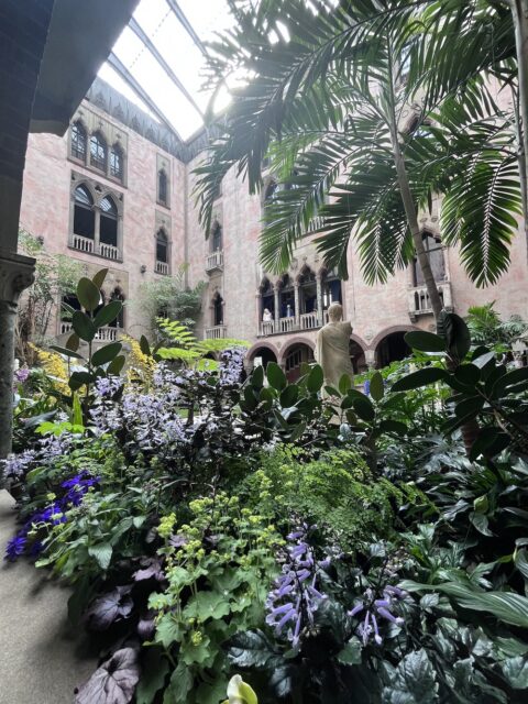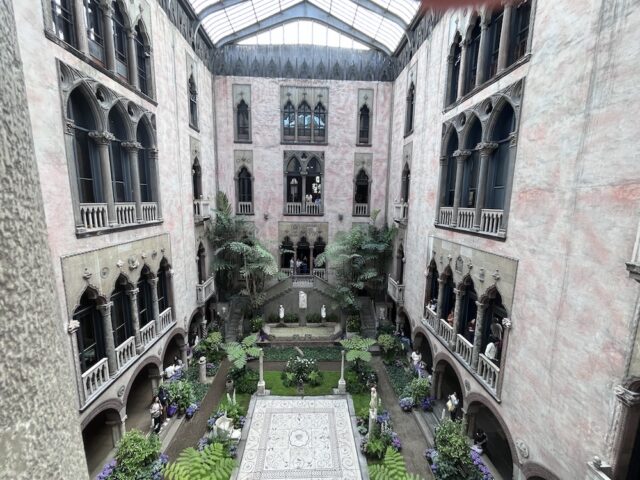 ボストンで今回の旅で一番訪れたかったミュージアムは、イザベラ・スチュワート・ガードナー美術館でした。創設者の名前がそのままつけられた美術館で、フィランソロピストでもあり、芸術家のパトロンとしても有名な美術品コレクターのイザベラは、1903年にこの大邸宅のような美術館を開設しました。90年代初頭、このミュージアムにて前代未聞の盗難事件があったことでも知られています。フェルメールやレンブラント、マネなどの作品もまだ見つかっていないそうです。