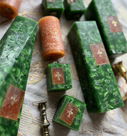 The candle design was inspired by one of the universal symbols, the “Cross,” which has been featured in costume jewelry designs using materials such as glass, limestone, and metals.