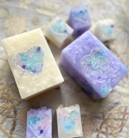 A romantic symbol of the heart, with a spring-summer color scheme of pastels, the candle is lit, reviving the vibrant era of the 1950s-60s, when glass beads and limestone were frequently chosen to illuminate the fashion scene.