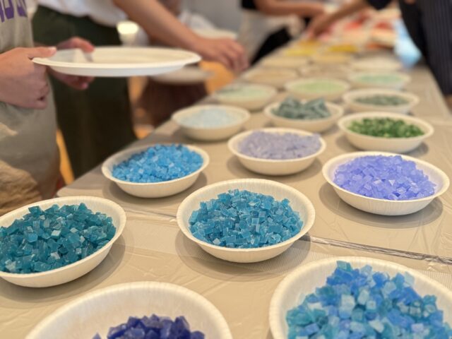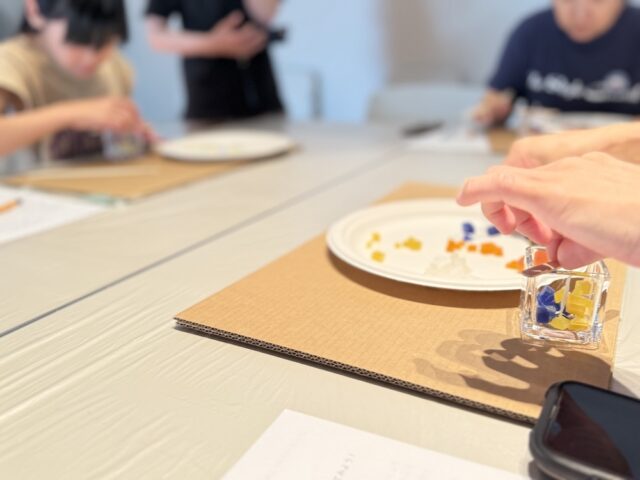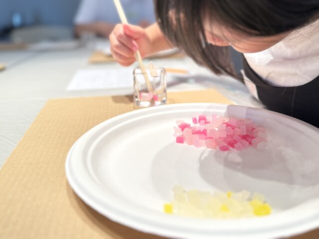 自分の席に着くと、ガラスの器に選んだ色を入れていきます。