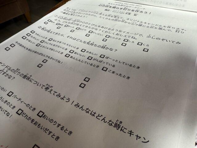 キャンドルの意味を親子で考えながら、楽しいワークショップになれればと思っています。