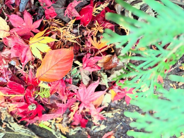 ということで、出発前にお庭の落ち葉かきをしました。歌を口ずさみながら今年も終わったギボウシの株を綺麗にしました。自然の色って、どうしてこんなにゴージャスなのかしら。