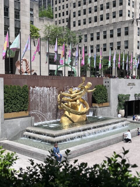 中央駅から五番街方面へ。私の建物好きを知っているフランクは、まずニューヨークのアールデコが満喫できるロックフェラーセンターに連れて行ってくれました。直線と曲線、そして高さが半端ないスケールで、建物がこんなに街の空気を一変させる力があり、緻密に計算されたフォルムとディテールをみると、教科書や写真の上では把握できない迫力にすでに圧倒されていました。