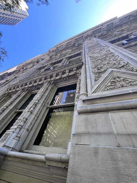 教会を出て上を見上げると、これはどう理解していいかわからないくらい高いビルが自分を囲んでいました。あまりにも私にとっては非現実的な高さなものだから、絵本の世界にあるような、ビル自体が生き物のように見えてきてしまって、ちょっとプロセスできていませんでした。かと思うと、建物のそれぞれが画像のような彫刻が施されてたりとかもして、いちいち立ち止まってしまいました。