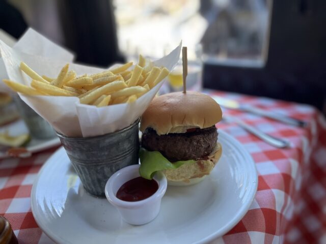 私はちょっと疲れるといつもフレンチフライが頭を駆け巡る人なので、メニューを見ながらバーガーよりもフレンチフライがサイドでついているものを選んでいました。それでも、ここのバーガーは絶品で、パティも1インチくらいはあったかしら。ミディアムレアでいただいてとっても美味しかったです。