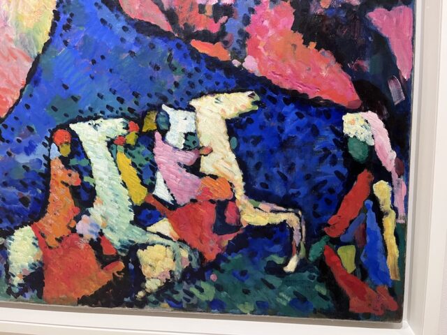 近くで筆のストローク、色の選び方、時間の捉え方。全ての要素が、シャガールはこちらが連れられていくような感覚に、そしてカンディンスキーはこちらに迫ってくるような感覚になりました。