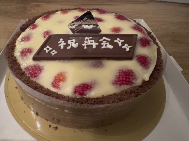 写真は父の大好きなKINOTOYAさんのケーキ。キャンドルを灯して再会を祝しました。